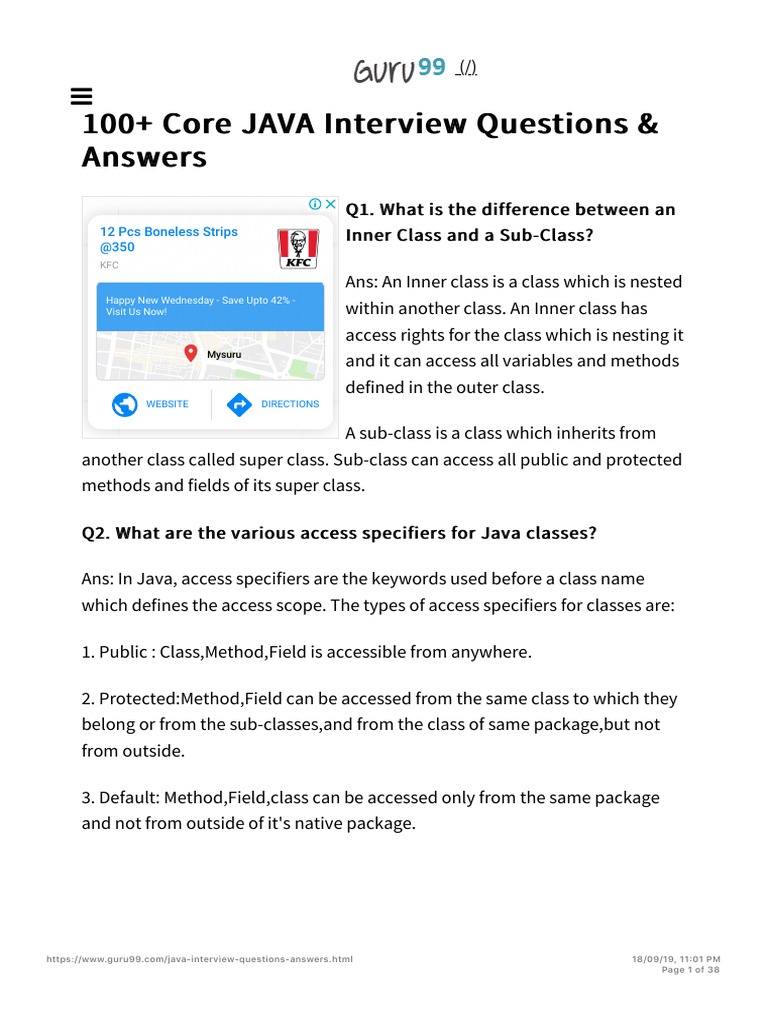 100 Core Java Interview Questions Answers Pdf Method Computer Programming Class Computer Programming